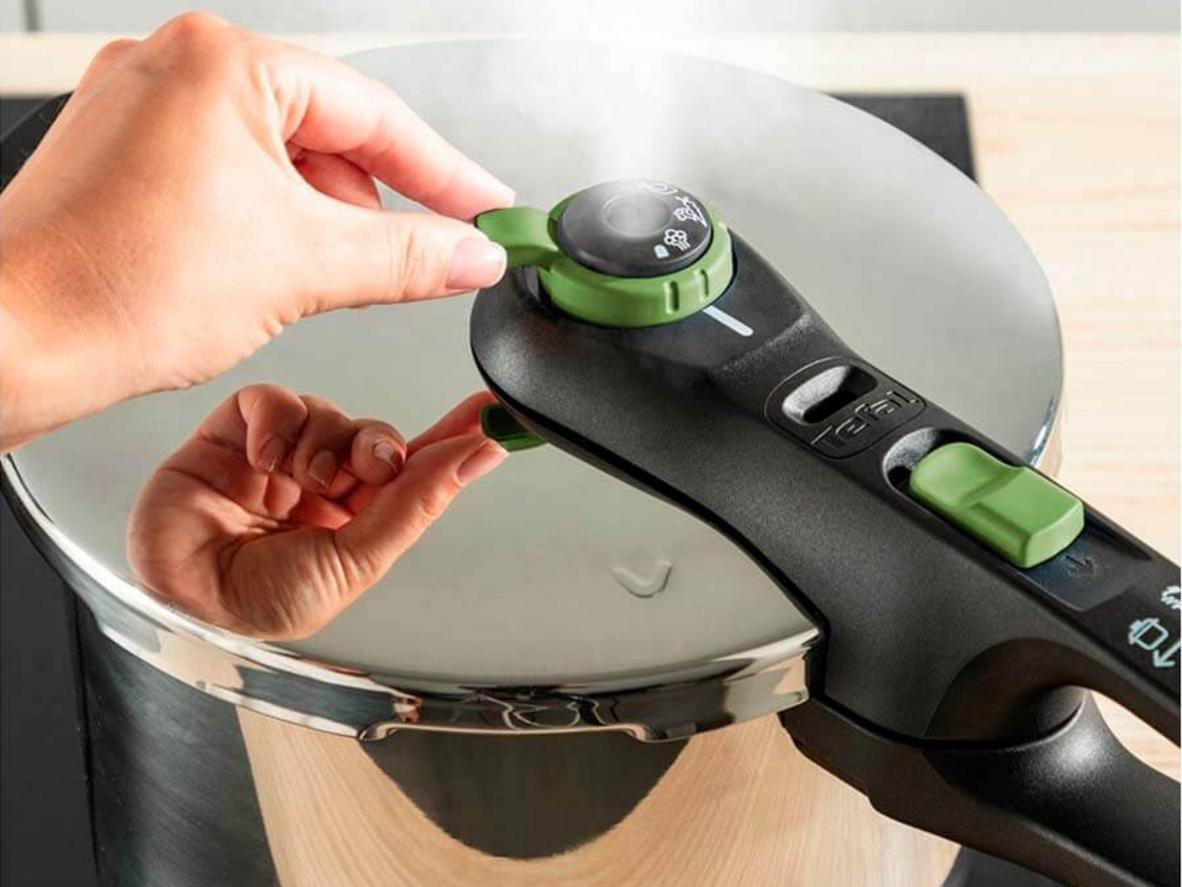 An toàn là ưu tiên hàng đầu của bạn khi dùng nồi áp suất; Tefal P2580702 đảm bảo điều đó bằng thiết kế khóa đa điểm và cơ chế xả áp chuẩn. Hệ thống khóa 5 điểm cố định nắp chặt, giảm nguy cơ mở nắp sai cách. Van xả áp (giải thích ngắn: van này tự giảm áp lực khi vượt mức an toàn) giúp kiểm soát hơi và áp suất, còn tay cầm cách nhiệt giúp thao tác an toàn ngay khi nồi đang nóng.
