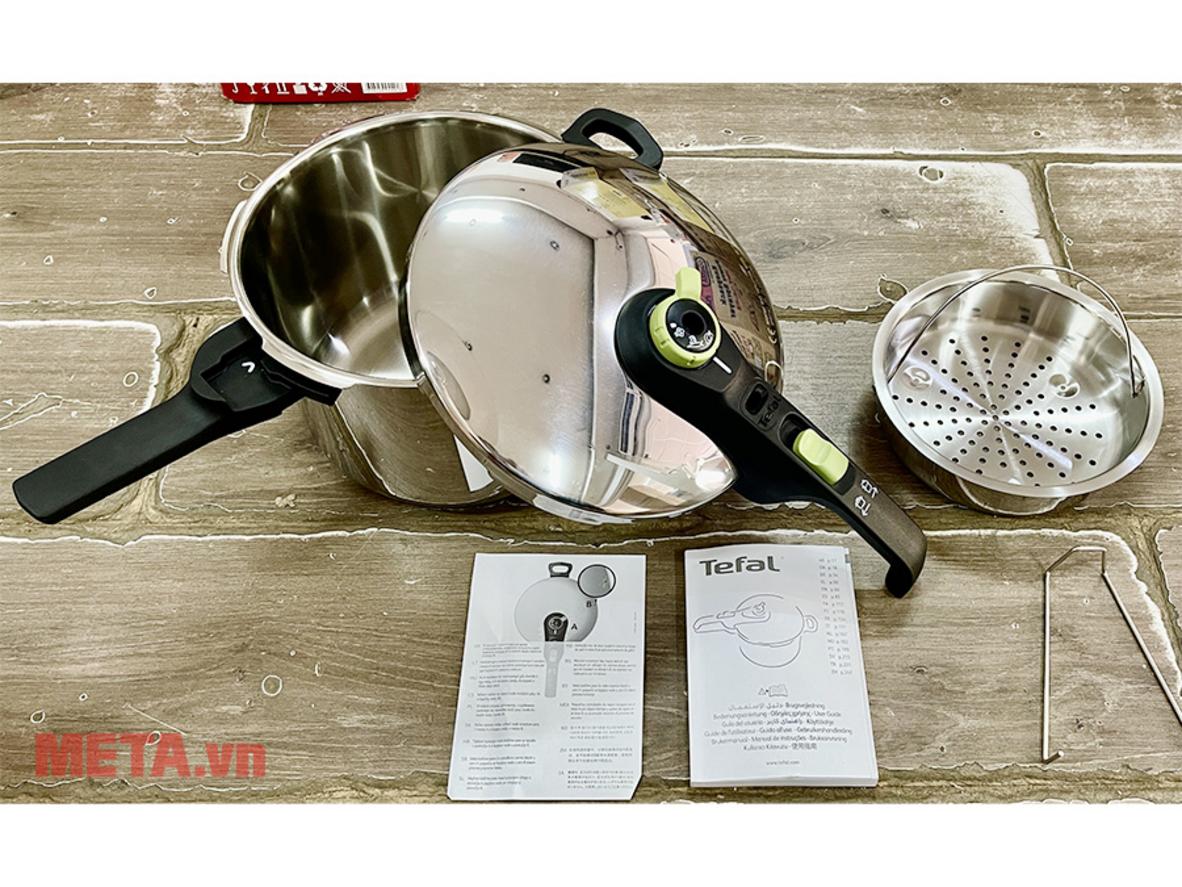 Review Nồi áp suất inox Tefal P2580702 (6 lít, kèm khay hấp)