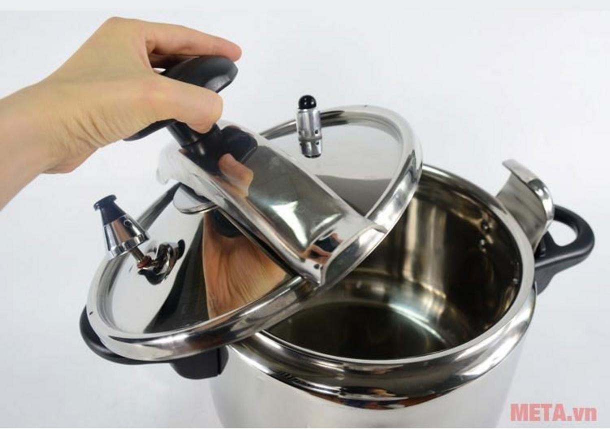 An tâm sử dụng: thân và vung làm từ Inox 304 chống gỉ, dễ vệ sinh, đáy ghép 3 lớp truyền nhiệt đều nên không cong vênh sau thời gian dài. Hệ thống an toàn gồm van áp suất chính, van báo thừa và khóa tự động bảo vệ khi áp suất vượt mức; sản phẩm có chứng nhận ISO/CE/GS nên bạn yên tâm về chất lượng. Chúng tôi đánh giá cao độ bền và hiệu quả tiết kiệm năng lượng của model này.
