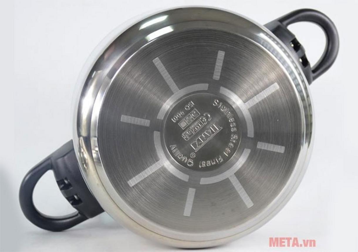 • Đáy: ghép 3 lớp (thép – nhôm – thép) — tương thích bếp từ và mọi loại bếp.
