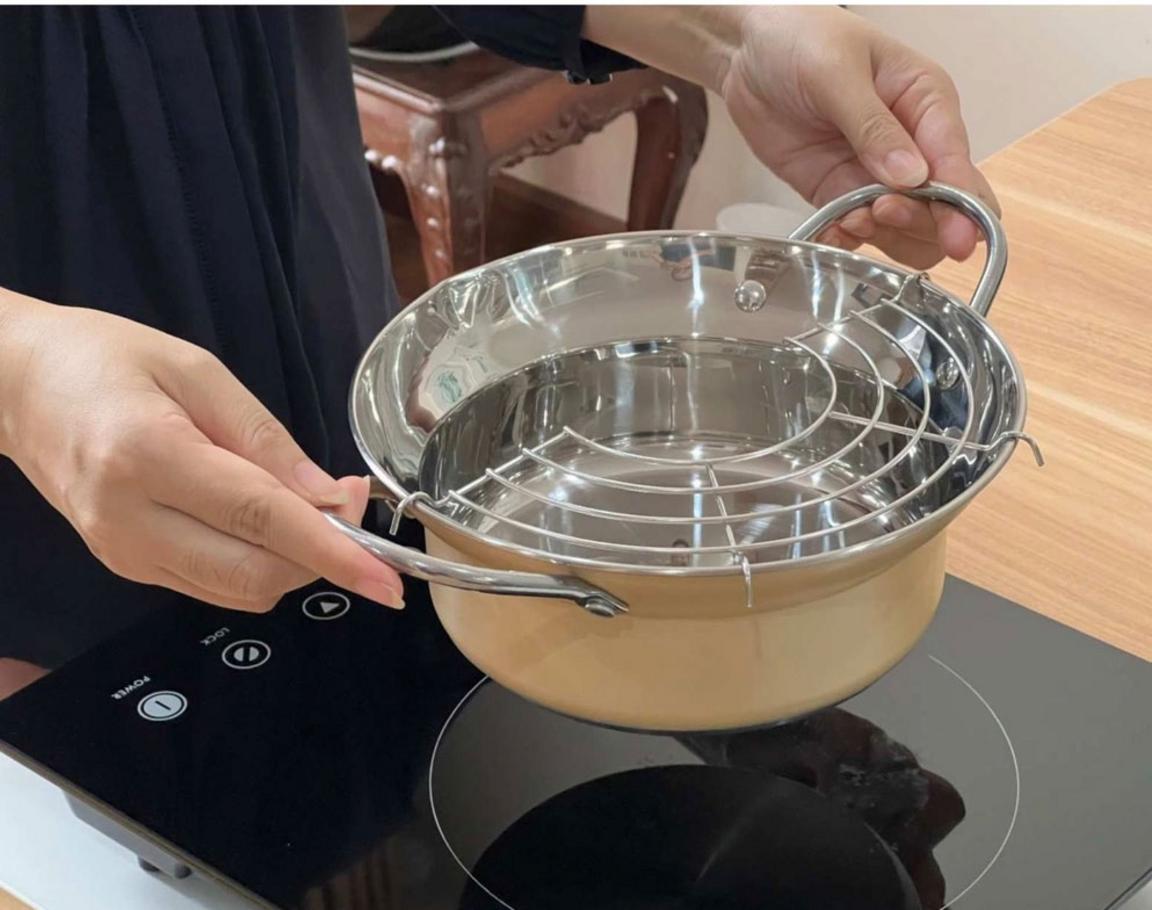 Inox 304 giữ thực phẩm an toàn, không gỉ và rất dễ vệ sinh — bạn sẽ ít phải lo về mùi kim loại hay oxy hóa sau thời gian dùng. Với chất liệu inox 304 cao cấp, nồi bền bỉ theo thời gian và giữ được vẻ sáng bóng của bếp. Đây là điểm then chốt khi bạn muốn đầu tư một dụng cụ chiên rán dùng lâu dài cho gia đình.