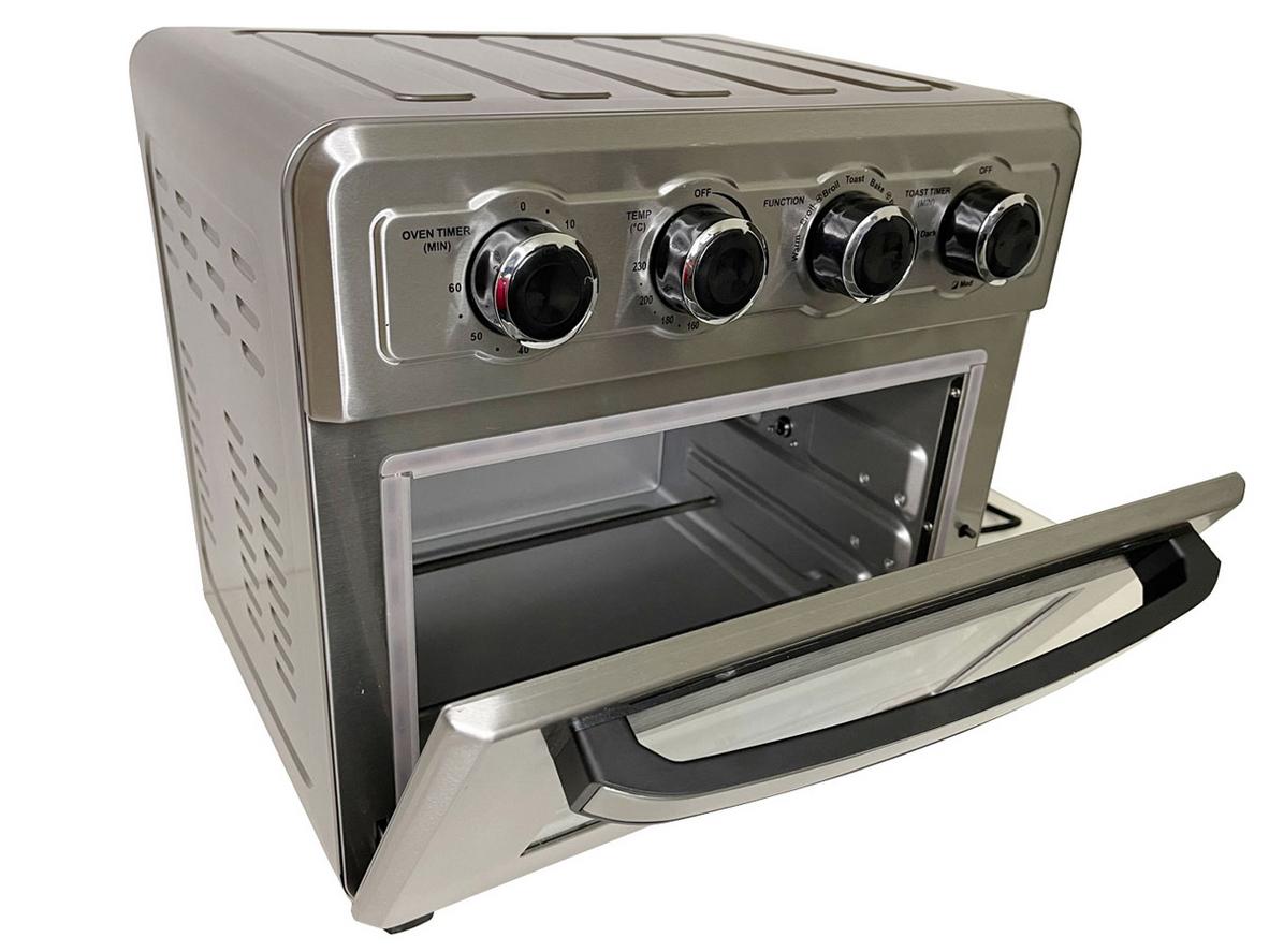 Dung tích 21L cho phép bạn quay nguyên con gà ~2.5–3kg hoặc nướng pizza 30cm, tiết kiệm lượt nấu cho gia đình. Lòng thép không gỉ phủ chống dính giúp vệ sinh nhanh, còn cửa kính 2 lớp giữ nhiệt và an toàn khi quan sát. Cơ chế tự ngắt khi quá nhiệt bảo vệ máy và người dùng, rất phù hợp cho nhà có trẻ nhỏ.