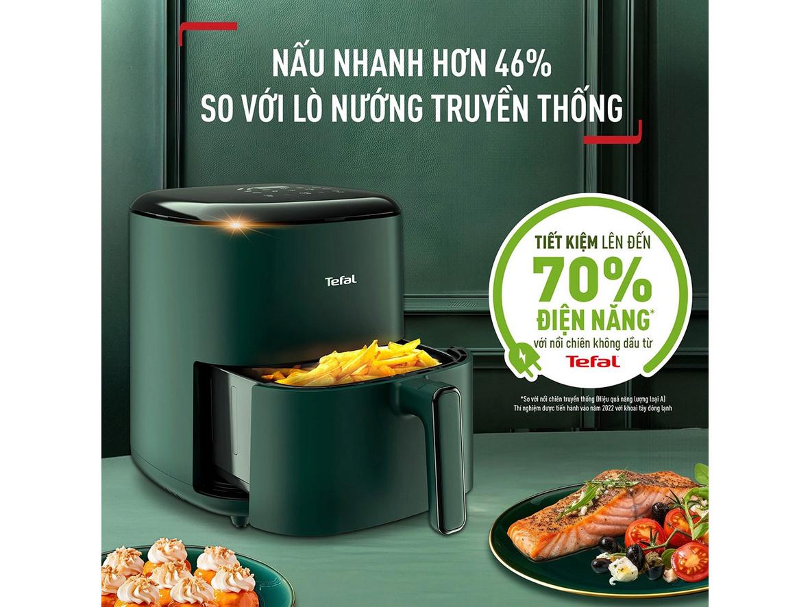 Ăn lành mạnh, nấu nhanh và dễ dùng: Nồi chiên không dầu điện tử Tefal Easy Max EY245310 – 5 lít giúp bạn chế biến món giòn bên ngoài, mềm bên trong với rất ít dầu, phù hợp cho gia đình 3–6 người. Bảng điều khiển điện tử trực quan và giỏ chống dính có thể rửa bằng máy giúp bạn tiết kiệm thời gian và công sức dọn dẹp. Thiết kế nhỏ gọn còn giúp bếp gọn và hiện đại hơn.