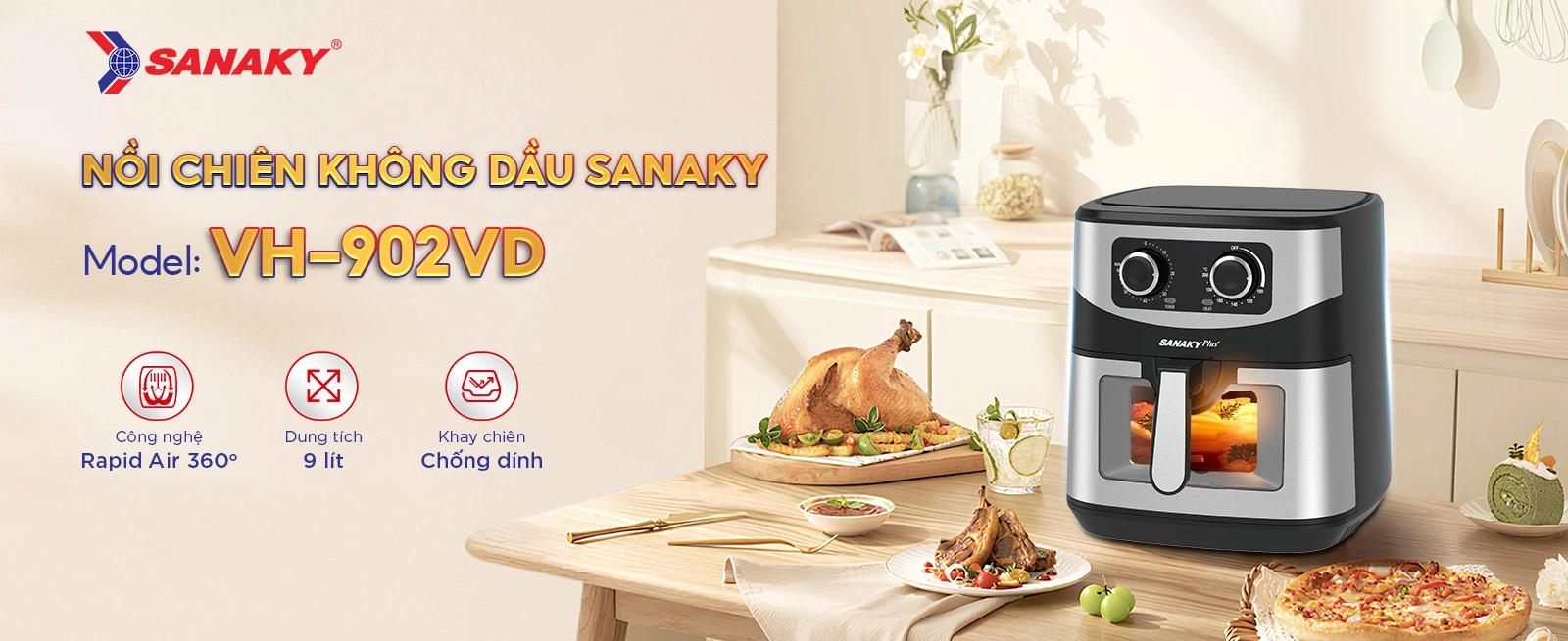 Nồi chiên không dầu Sanaky VH-902VD là một thiết bị gia dụng có dung tích lớn 9 lít, sử dụng công nghệ Rapid Air để chiên nướng thực phẩm mà không cần hoặc dùng rất ít dầu mỡ, giúp giảm đến 90% lượng chất béo.