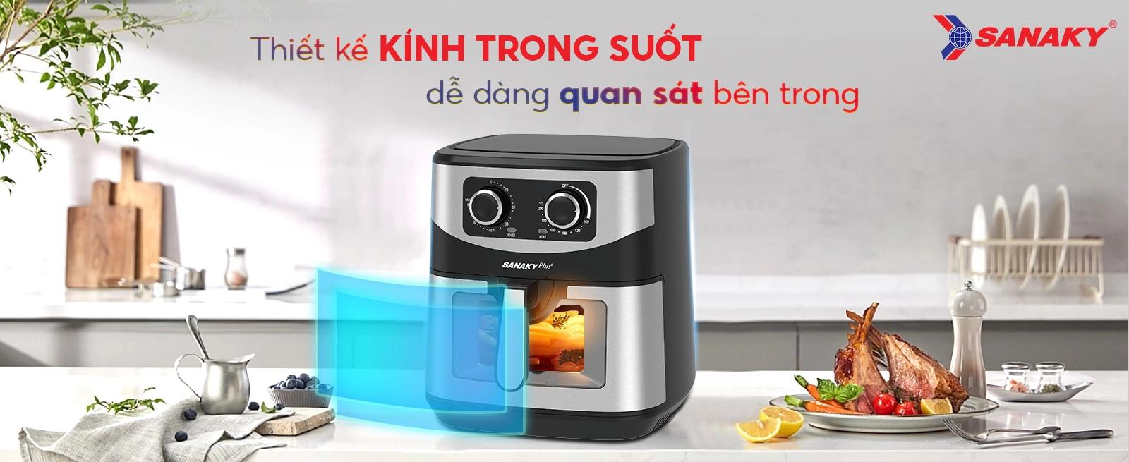 Nồi chiên Sanaky VH-902VD — 9L, Rapid Air, dễ quan sát.