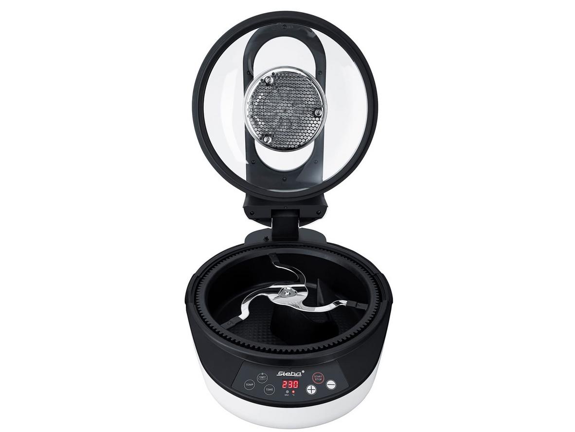 Trục đảo tự động của Steba HF2050 quay thực phẩm liên tục, giúp các mặt chín vàng đều mà bạn không phải mở nắp hay lật từng miếng. Điều này tạo lợi thế rõ ràng khi chiên khoai tây, rang lạc hay làm cơm rang — thức ăn giòn đều, giữ được độ mềm bên trong. Với trục có thể tháo rời, bạn vẫn có thể chế biến phẩm nguyên miếng lớn như gà mà không lo kẹt.