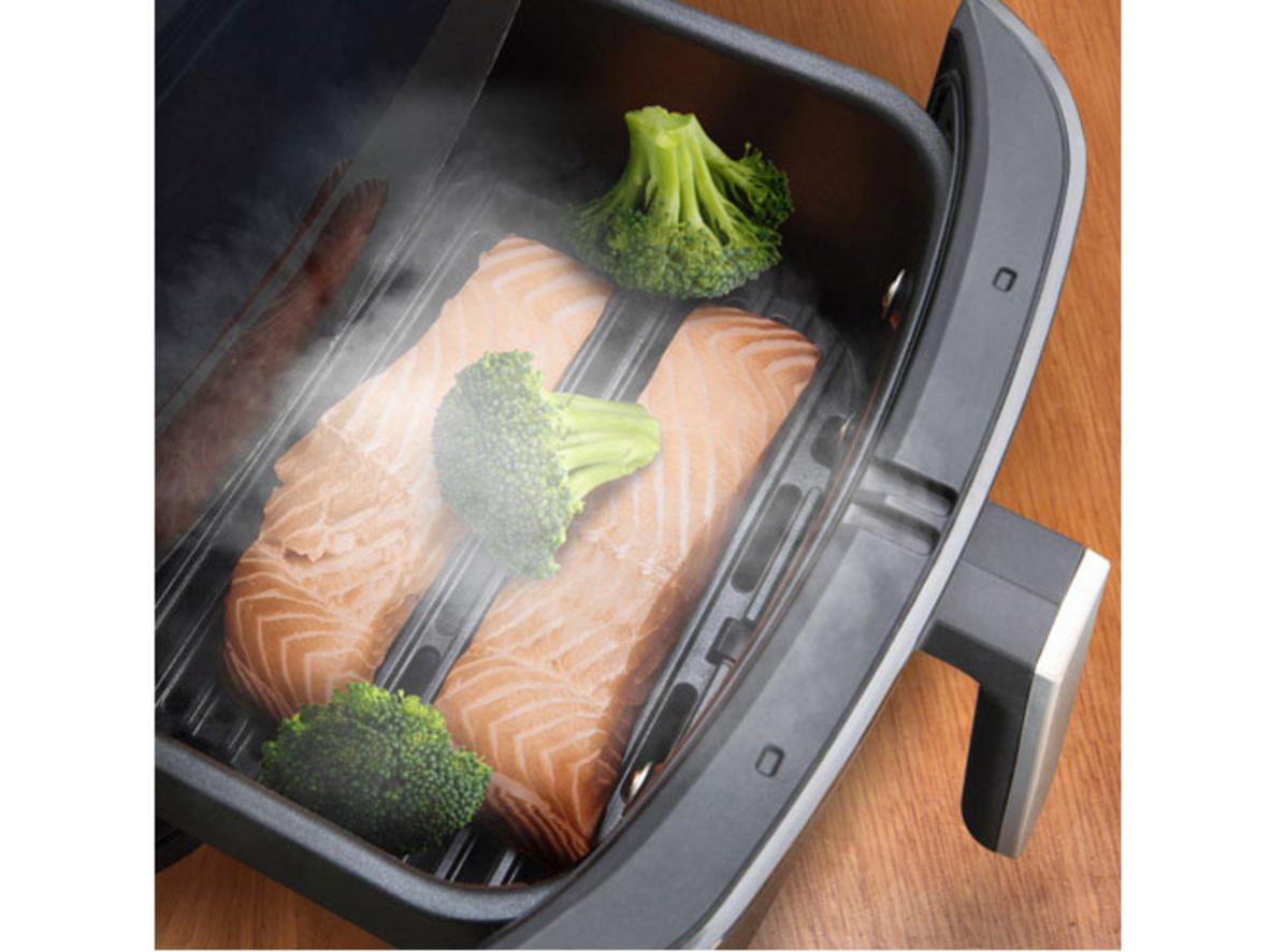 Giúp rau củ, cá và các món hấp giữ vitamin và độ tươi mà vẫn nhanh gọn. Bình chứa nước tích hợp 1,1 lít cho phép chế độ Steam hoạt động hiệu quả, đồng thời kết hợp được với chiên/nướng để có lớp ngoài giòn, trong mềm. Phạm vi nhiệt 80–200°C và hẹn giờ đến 60 phút cho phép bạn linh hoạt với các món Việt như cá hấp, rau luộc hay dimsum.