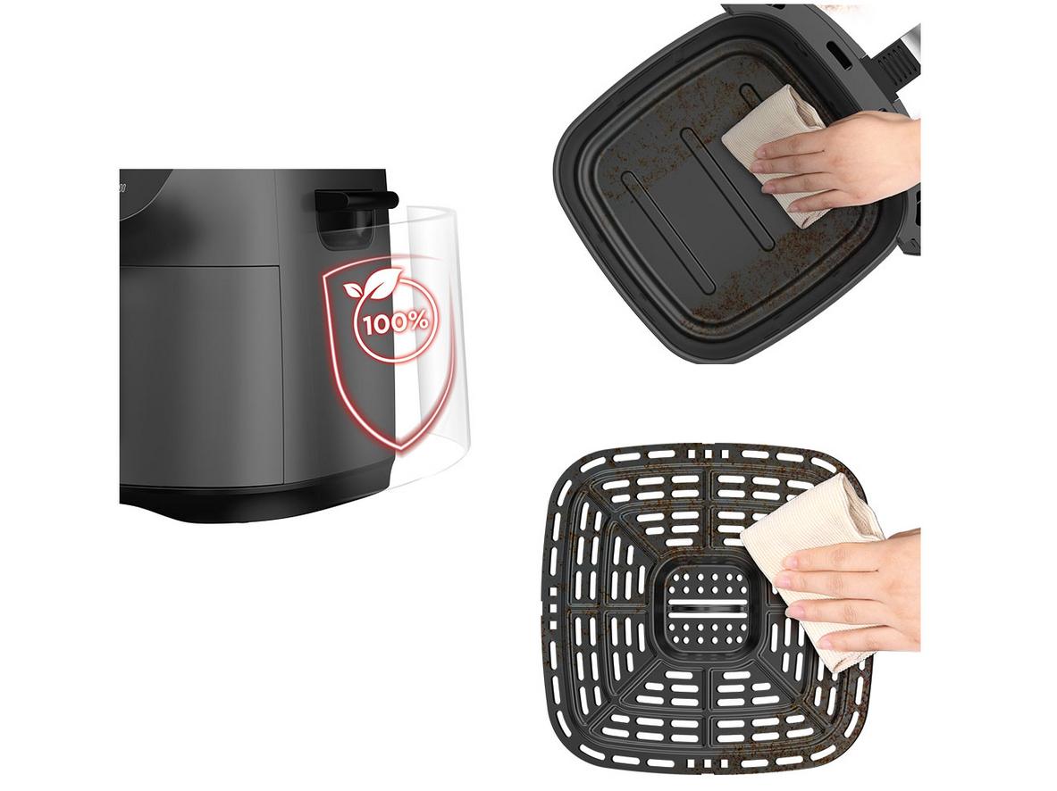 Heat‑Q 360° tạo luồng khí nóng bao quanh, giúp thực phẩm vàng giòn đều bên ngoài. Cảm biến nhiệt ±1°C kiểm soát chính xác, giảm hiện tượng cháy và chín không đều ở phần dày. Kết hợp này giữ vị tự nhiên và giảm dầu thừa, đem lại món ăn ít ngấy.