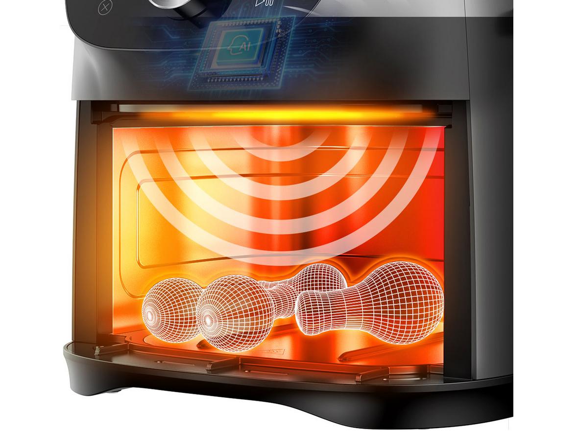 Công nghệ Heat-Q 360° tạo luồng khí nóng đều, cho lớp vỏ giòn rụm và bên trong mềm mọng. Cảm biến nhiệt chính xác ±1°C giúp nướng chín đều và hạn chế thất thoát năng lượng. SmartChef với nhiều chương trình tự động giúp bạn nấu món chuẩn, không cần canh nhiều.