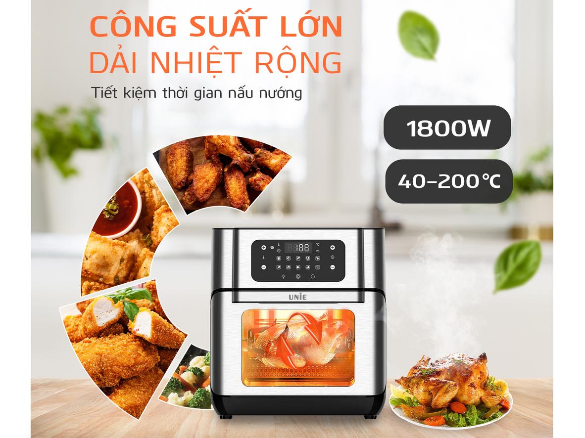 Unie UE-1000 kết hợp công suất mạnh với công nghệ đối lưu để phân bổ nhiệt đều, rút ngắn thời gian nấu và giảm lượng dầu dùng. Dung tích lớn 12 lít giúp bạn phục vụ tiệc nhỏ hoặc bữa ăn cả nhà chỉ trong một lần nấu. Bảng điều khiển trực quan cùng nhiều chế độ cài sẵn giúp bạn tiết kiệm thời gian học thao tác.