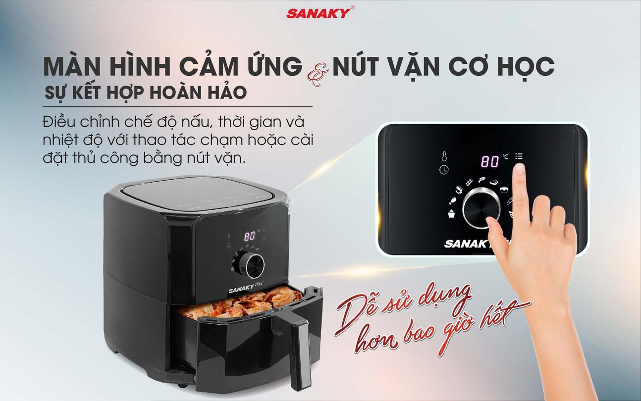 Nồi chiên không dầu Sanaky VH-60AT2 là dòng sản phẩm có dung tích lớn 6.5 lít, sử dụng công nghệ làm chín thực phẩm bằng không khí nóng Rapid Air giúp giảm đến 80% lượng dầu mỡ.