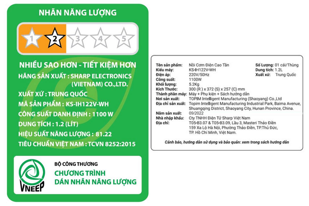 Mua Nồi cơm cao tần Sharp KS-IH122V-WH 1.2 lít tại Siêu Thị Đại Việt, bạn có bảo hành chuẩn hãng, hỗ trợ kỹ thuật và giao-lắp nhanh. Đặt hàng ngay để nhận ưu đãi và an tâm sử dụng.