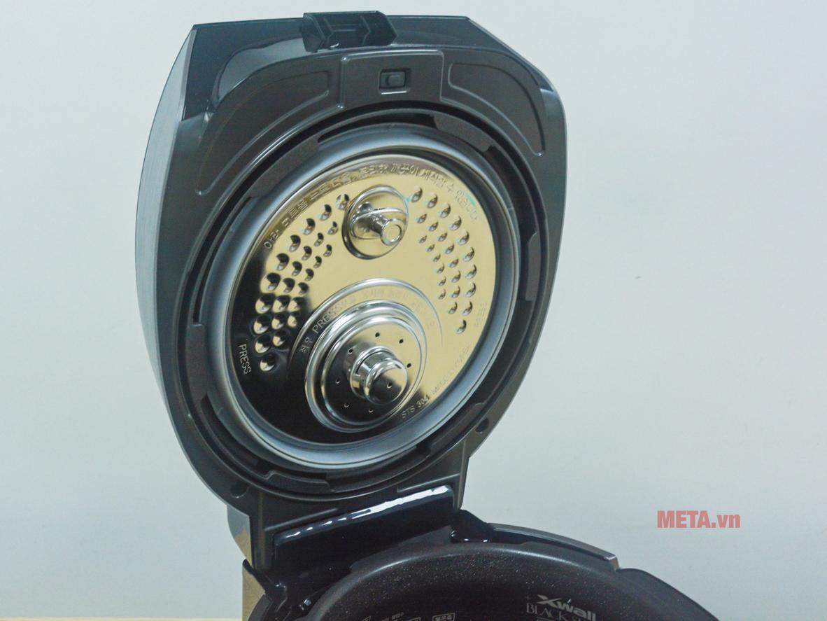 Công nghệ Induction Heating (IH) kết hợp áp suất cao 2.0 ATM (≈29 PSI) tạo ra nhiệt đều, làm chín sâu tới lõi hạt — vì vậy cơm chín đồng đều nhưng vẫn giữ được vitamin và khoáng chất. Lòng nồi bằng thép không gỉ Full Stainless cùng lớp phủ X-wall Black Shine chống dính giúp nồi bền bỉ theo thời gian và dễ vệ sinh; bạn sẽ ít tốn công cọ rửa và an tâm sử dụng lâu dài. Nắp vung One-Touch tháo rời bằng inox và van Double Soft Steam Cap giữ áp suất ổn định, giảm tiếng ồn và đảm bảo an toàn khi nấu áp suất.
