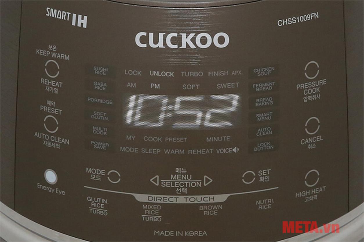 Cơm dẻo thơm, giữ dưỡng chất — giải pháp cho gia đình bận rộn (Công nghệ IH cao tần kết hợp áp suất, công suất 1455W). Nồi cơm điện Cuckoo 1.8 lít CRP-CHSS1009FN cho bạn bữa cơm ngon nhanh, ít tốn công. Thiết kế bằng thép không gỉ và lòng nồi phủ X‑Wall giúp bền bỉ và dễ vệ sinh. Bảng điều khiển rõ ràng, nhiều chế độ nấu tự động phù hợp mọi món ăn hàng ngày.