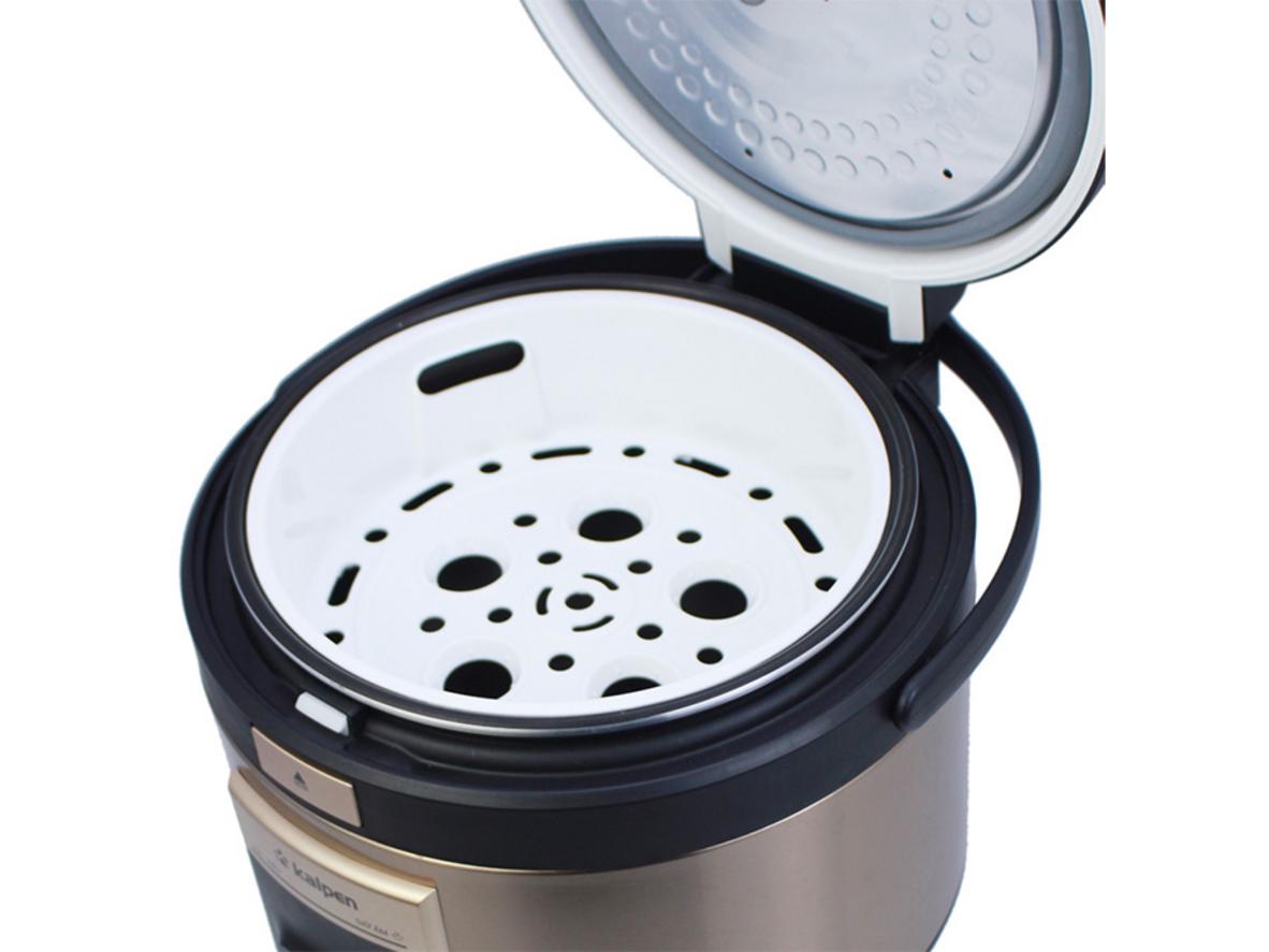 Kalpen R5 đi kèm xửng hấp, cốc đong và muỗng — tiện cho xôi, hấp rau hoặc hấp bánh nhỏ. Điều khiển dạng nút gạt với 2 chế độ Nấu và Giữ ấm rất trực quan; phù hợp người mới dùng, gia đình có trẻ nhỏ hoặc ông bà. Việc thao tác đơn giản giúp bạn thử nhiều món mà không cần kỹ thuật. Kết quả: bữa ăn đa dạng, chế biến nhanh và ít rắc rối sau khi nấu.