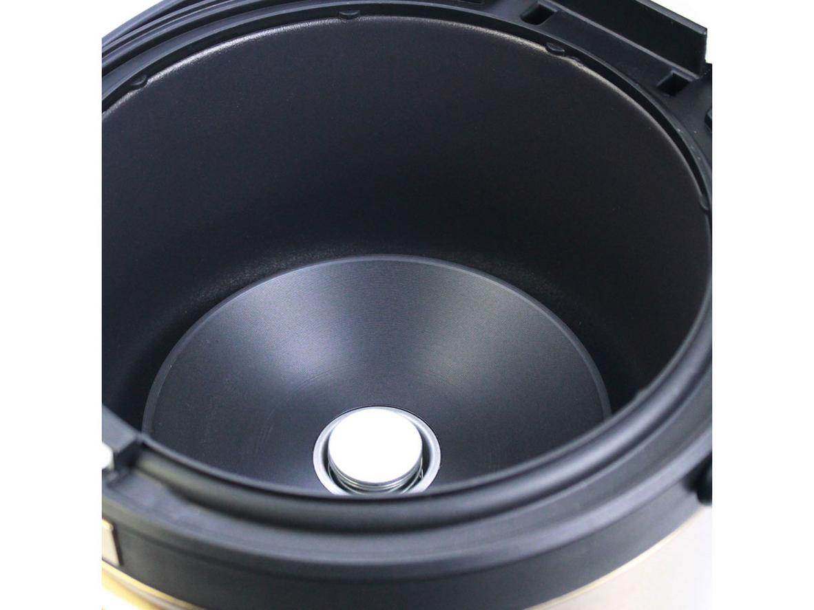 Kalpen R5 dùng lòng niêu nhôm nguyên chất dày 2mm, cấu tạo 5 lớp và phủ chống dính Whitford cao cấp không chứa PFOA. Thiết kế dày dặn này truyền nhiệt đều hơn, giảm điểm cháy đáy và giữ nhiệt lâu hơn so với lòng mỏng. Kết quả là hạt cơm chín đều, ít bị cứng ở lõi hay cháy ở đáy. Với lòng niêu như vậy, việc chùi rửa sau khi nấu cũng nhanh hơn — bạn tiết kiệm thời gian ở bếp.