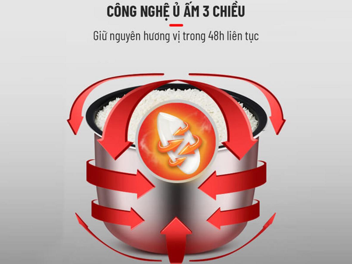 • Công nghệ: Ủ ấm 3D giữ cơm dẻo và giữ ấm lâu (tới ~48 giờ)