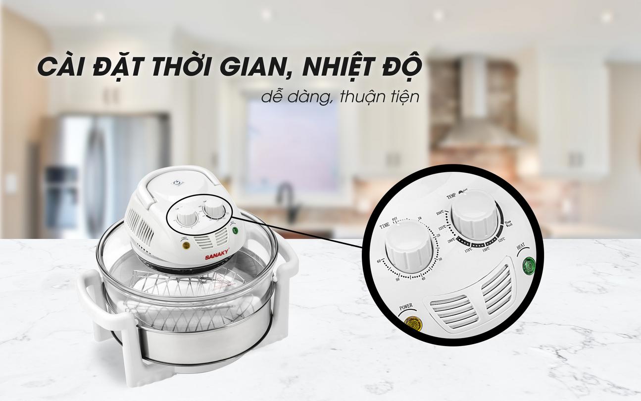 Hệ thống sử dụng đèn halogen làm nguồn nhiệt chính và quạt đối lưu để phân bổ đều nhiệt trong khoang. Nhờ vậy, nhiệt lan tỏa toàn bộ bề mặt, hạn chế điểm cháy và giảm thời gian nấu. Kết quả là món nướng giòn nhưng không bị khô, giúp bạn phục vụ gia đình nhanh hơn mà vẫn giữ vị thơm tự nhiên.
