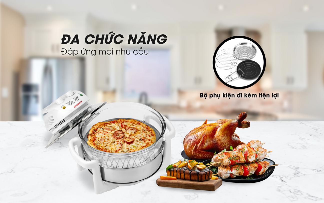 Nồi Nướng Thủy Tinh Sanaky VH-148T/D dung tích 14L, công suất 1300W và bảo hành 24 tháng — nướng nhanh, an toàn cho gia đình bận rộn. Bạn có thể nướng gà lá chanh, cá ướp hay bánh pizza mà vẫn giữ trọn hương vị; ít phải canh và tiết kiệm thời gian. Xem thêm về Lò nướng thủy tinh.