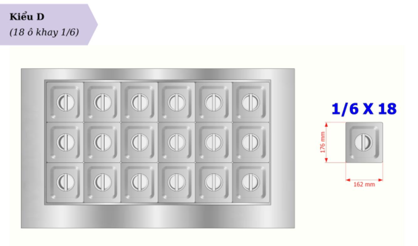 Khay GN full trên mặt bàn giúp chuẩn bị nhanh, trưng bày đẹp và rút ngắn thời gian phục vụ. Thiết kế mặt bàn tích hợp cho phép sắp xếp nguyên liệu theo món, giảm thao tác di chuyển giữa các thiết bị. Khi phục vụ buffet hoặc line take-away, khay GN tối ưu hóa không gian và tăng tính trực quan cho khách. Điều này giúp tăng tần suất bán thêm khi khách dễ thấy nguyên liệu tươi và hấp dẫn.