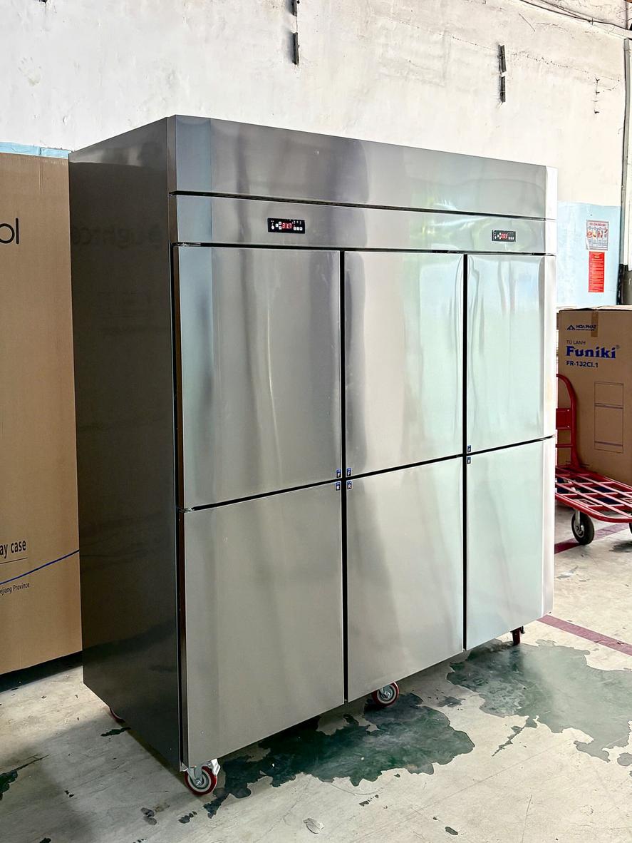 Tủ có dung tích 1600L giúp bạn lưu trữ lượng hàng lớn trong một lần. Thiết kế đứng 6 cánh tối ưu không gian và phân chia ngăn khoa học. Điều này giảm số lần tiếp hàng và tiết kiệm thời gian kho bãi. Kết quả là ít hao hụt và vận hành hiệu quả hơn.