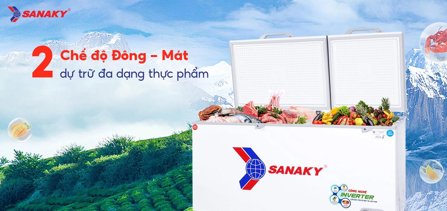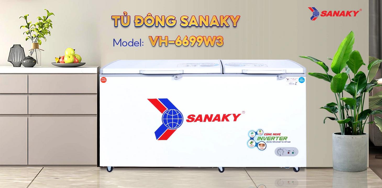 Tủ đông Sanaky VH-6699W3 là một tủ đông 2 ngăn hiện đại với dung tích sử dụng 485 lít (dung tích tổng 660 lít), được thiết kế đặc biệt để đáp ứng nhu cầu bảo quản thực phẩm của các gia đình và cửa hàng kinh doanh tại Việt Nam. Đây là giải pháp bảo quản dung tích lớn, tiết kiệm điện cho hộ gia đình (4–6 người), tạp hóa, quán ăn và nhà hàng nhỏ. Tại Siêu Thị Đại Việt — đại lý phân phối chính hãng — chúng tôi cam kết mang đến hàng chính hãng, bảo hành 24 tháng tận nhà và giao lắp tận nơi.