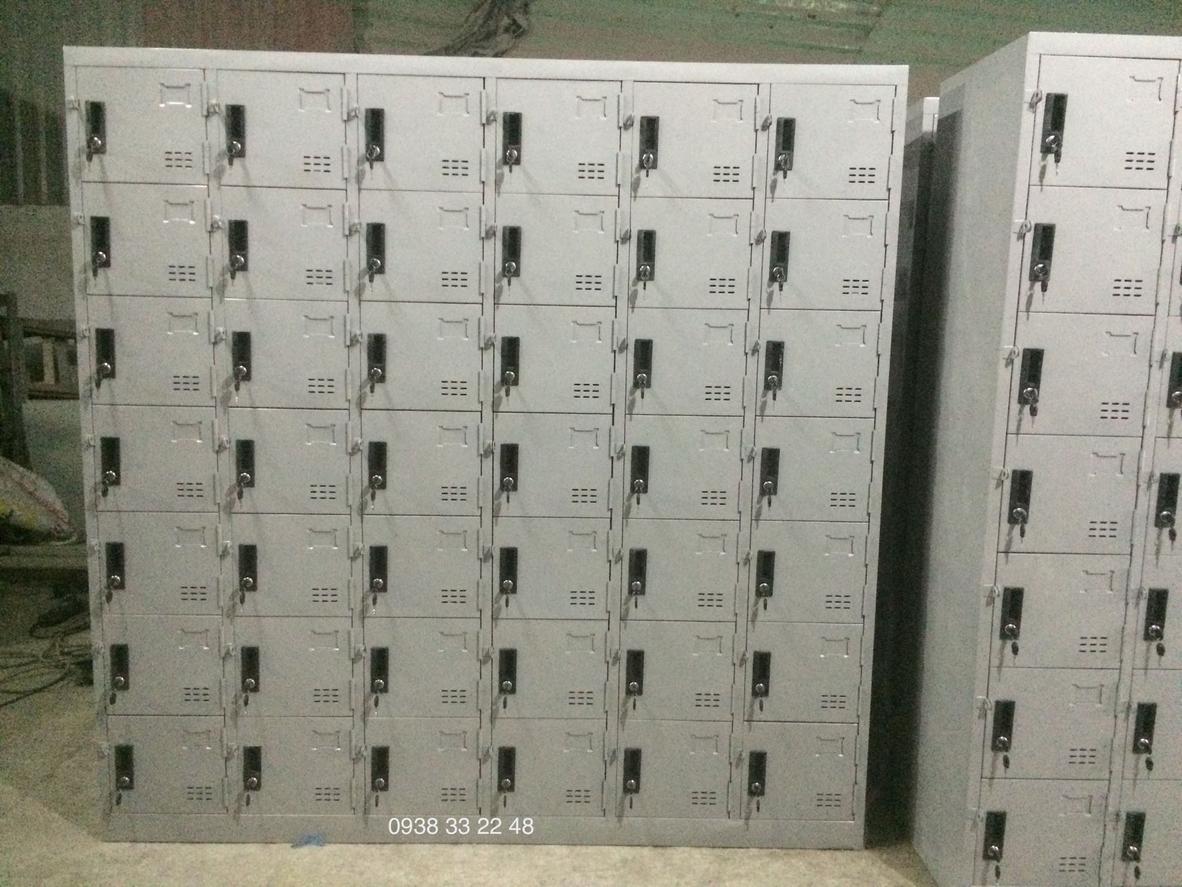 | Cấu tạo | 1 khối gồm 6 khoang, mỗi khoang chia thành 7 ngăn đều nhau, mỗi ngăn có cánh sắt mở với khóa locker liền tay nắm và tai khóa móc, có bảng tên nhân viên và lỗ thông gió trên cánh cửa |