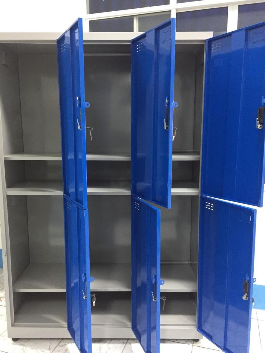 | Cấu tạo | Gồm 1 khối có 3 khoang, mỗi khoang chia thành 2 ngăn đều nhau, mỗi ngăn có cánh sắt mở với khóa locker liền tay nắm và tai khóa móc, bản tên nhân viên và lỗ thông gió trên cánh cửa |